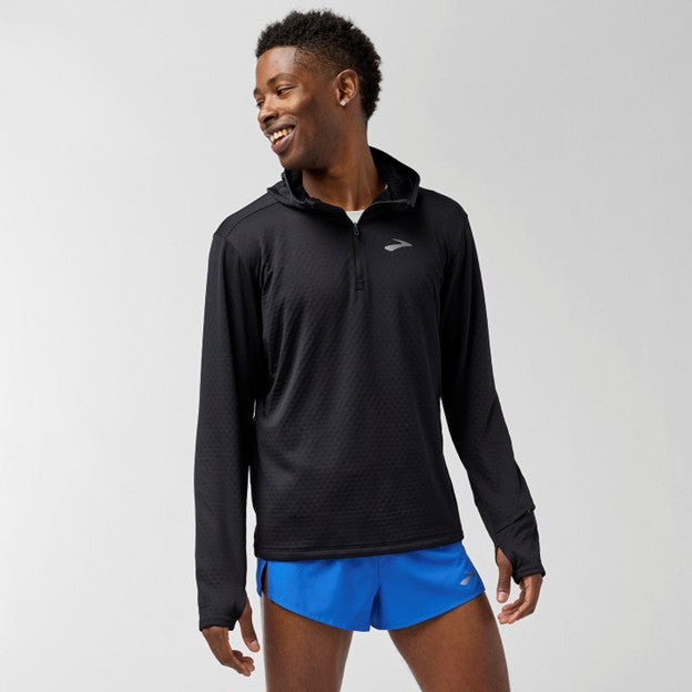 To keep your Brooks gear looking and performing its best, machine wash separately before wearing, try not to use fabric softeners, and tumble dry on low heat.