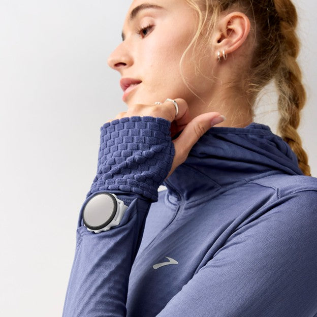 To keep your Brooks gear looking and performing its best, machine wash separately before wearing, try not to use fabric softeners, and tumble dry on low heat.