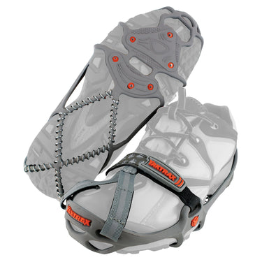 The Yaktrax Run ice traction cleats are designed for runners, by runners. Run naturally on packed snow and ice with the Yaktrax Run s combination of 3mm carbide steel spikes for reliable toe-off and 1.4mm steel coils for flexible landing on the heel, providing 360 of unbeatable traction. Continue your training during the winter as you would in any other season. The Yaktrax Run can be worn in temperatures as low as -41 Fahrenheit. For oversized shoes or boots, Yaktrax recommends purchasing one size larger than your normal shoe size.